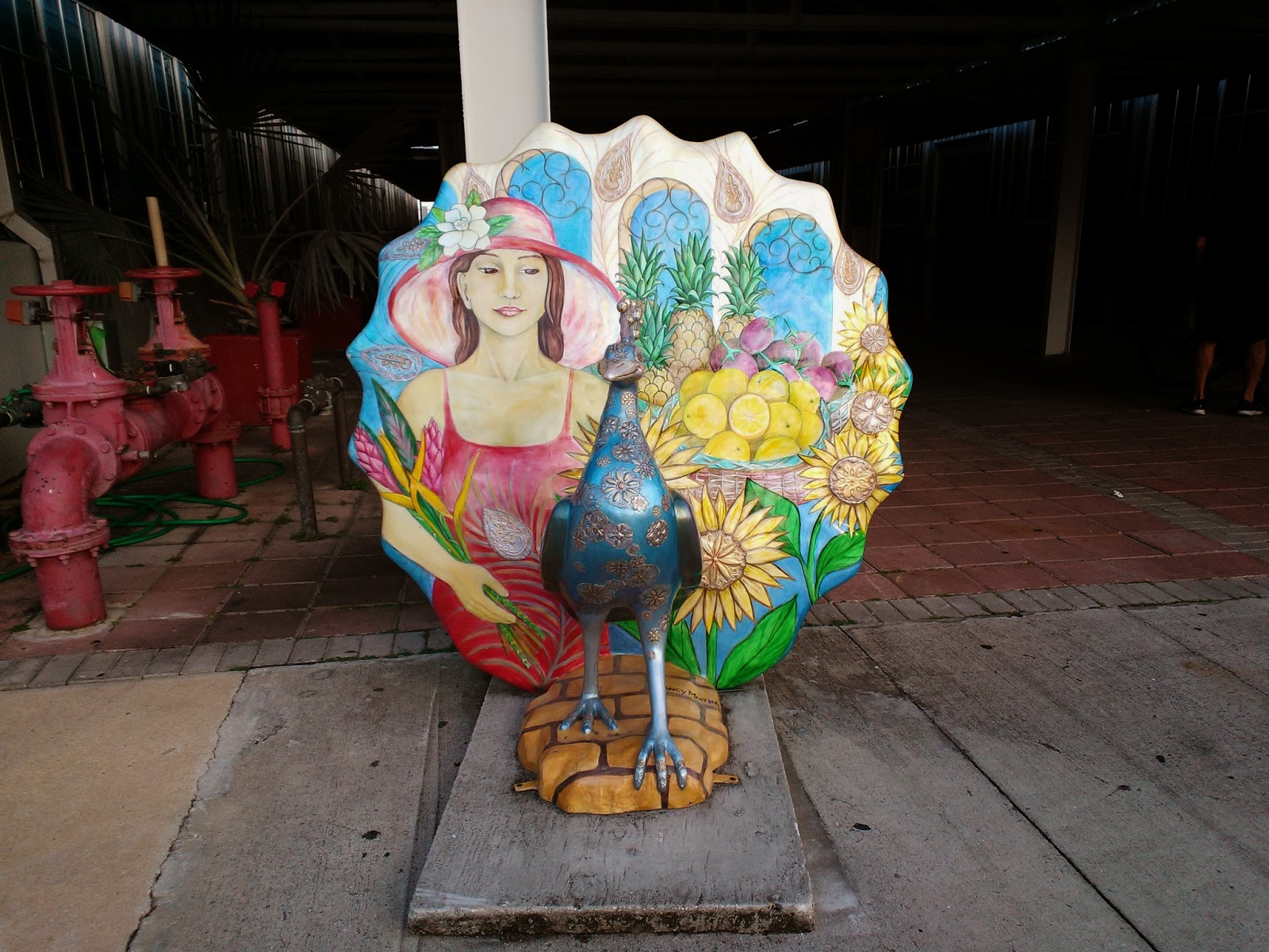 | This peacock stands guard outside Fresh Market |