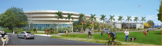 Approximately 15 years ago then Commissioner J.L. Plummer used a pocket item (something placed on the agenda at the last minute) at a commission meeting to push for a mixed-use highrise development for Dinner Key. A group of Grovites were aghast at the idea of a massive development on Dinner Key. Springing into action they had the 5 airplane hangers registered on the index of National Historic Buildings. What this means is that these 5 former-airplane hangers will be there until Coconut Grove freezes over. Those buildings are represented on the site plan (above) by the orange rectangles. The 6th orange rectangle is the current Miami City Hall.