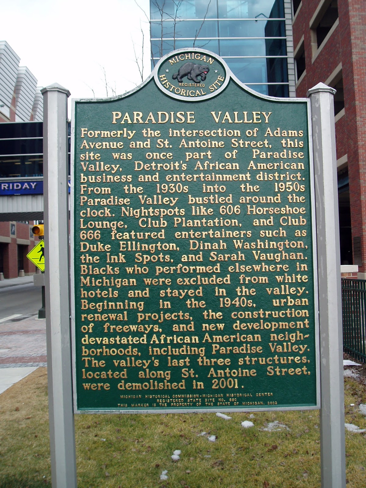 | The only clue there was once a place called Paradise Valley, aka Black Bottom, is this sign. |