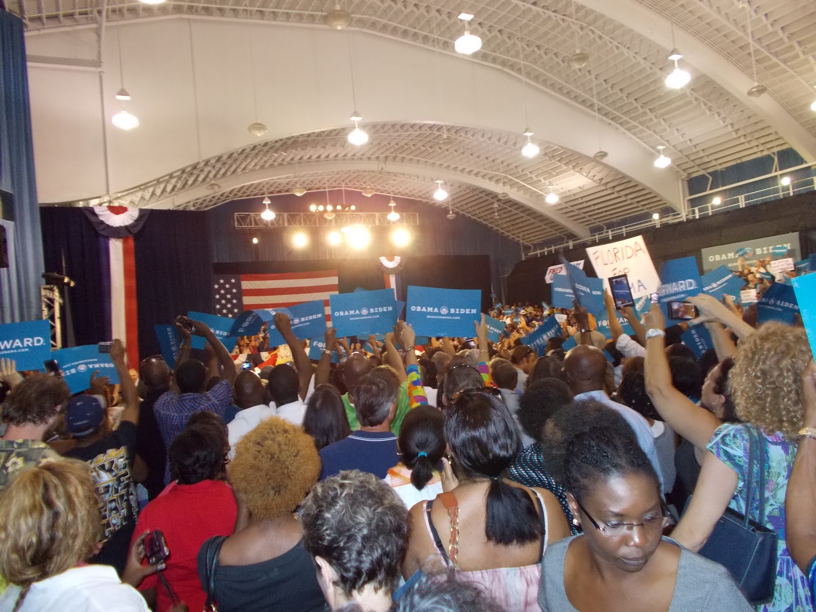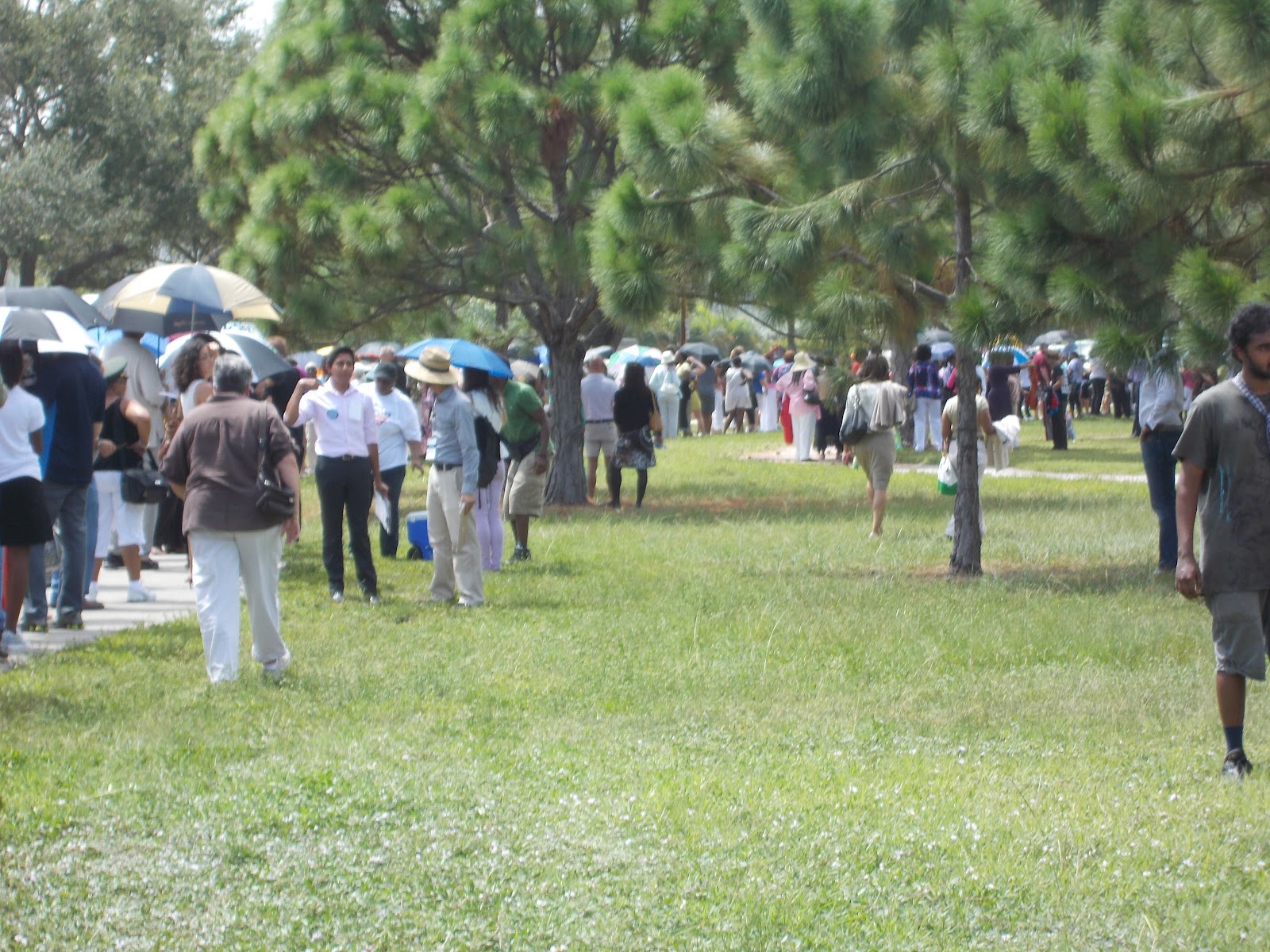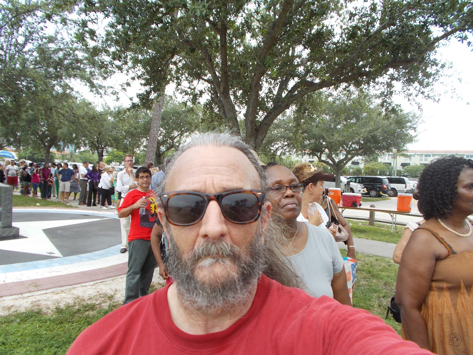 I wanted to take a picture of the security at the door, but as soon as I leveled my camera I got yelled at. When one is being yelled at by Fort Lauderdale police AND Broward Sheriff officers AND the Secret Service, ALL AT THE SAME TIME, one tends to do EXACTLY as they demand. That’s why there are no picture of that part of my adventure. However, I can describe it. All cell phones and cameras had to be turned on and handed to an officer, who inspected them and made sure they were operable. Purses, fanny packs, and knapsacks were also handed to the officers who searched them extensively. Everyone passed through metal detectors and then were ‘wanded’ on the other side. It was all quite similar to boarding an airplane, except we could keep our shoes on and there were no X-ray machines.