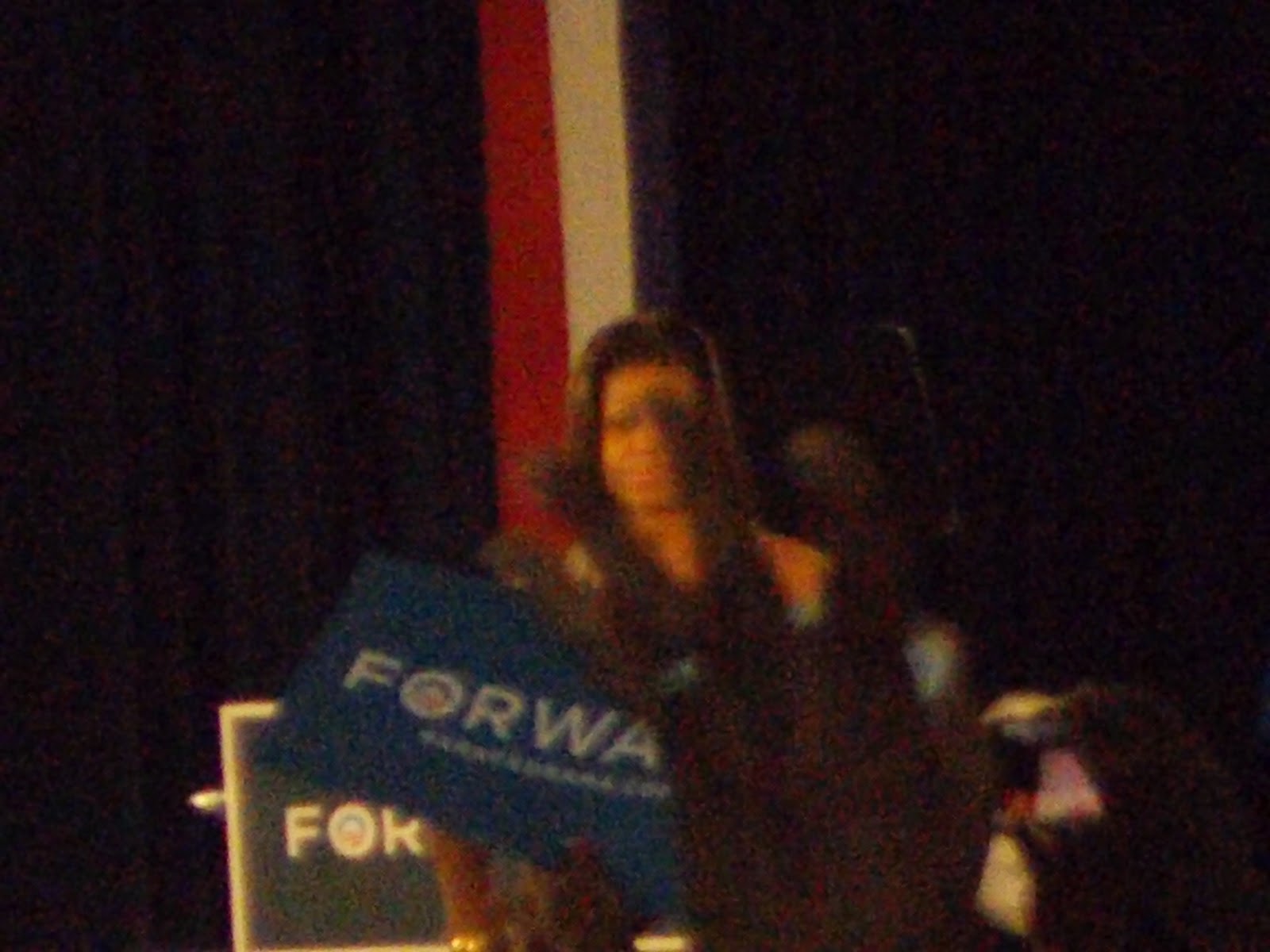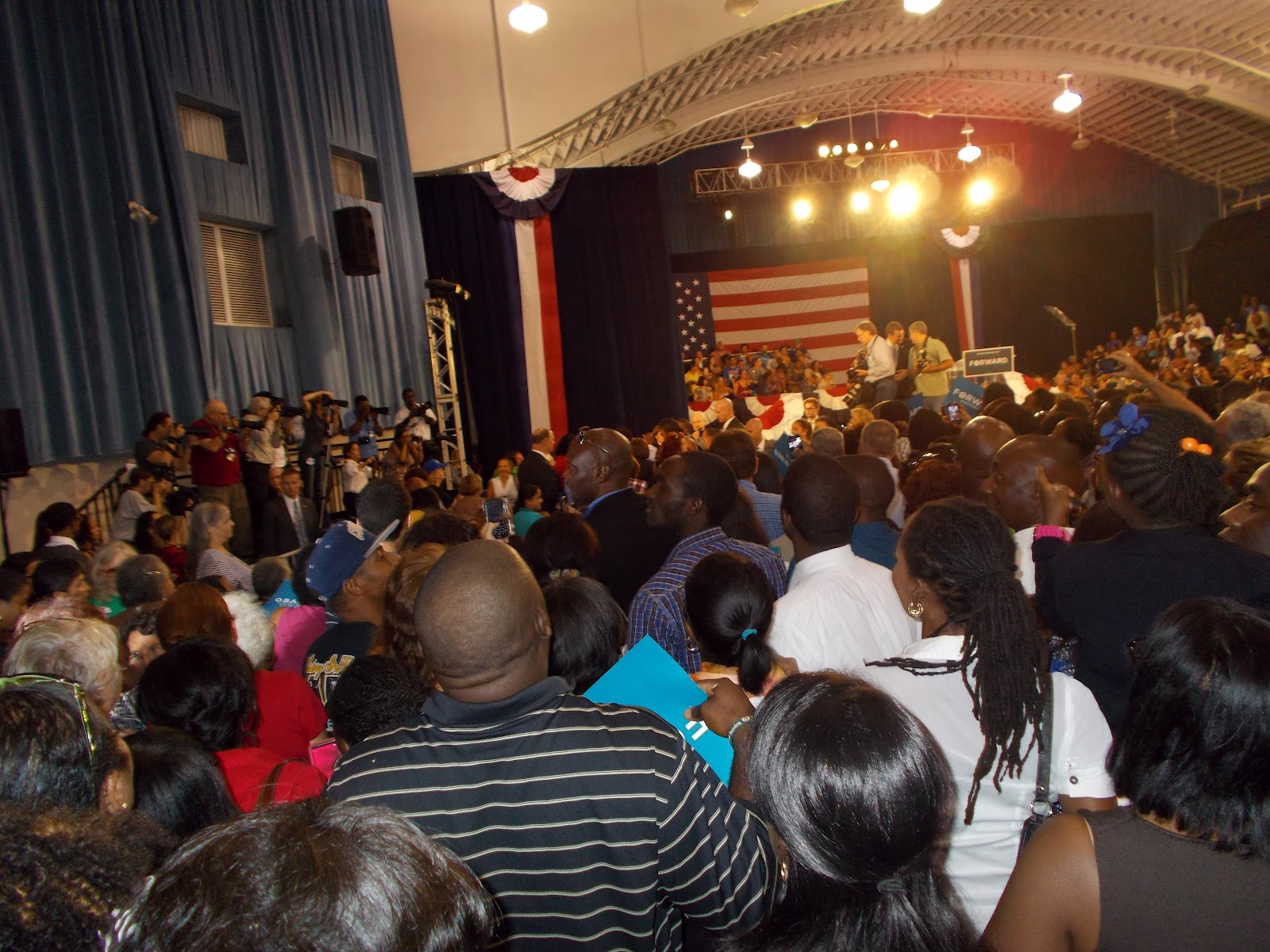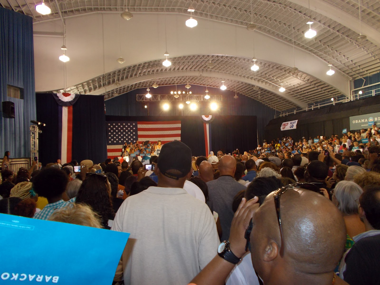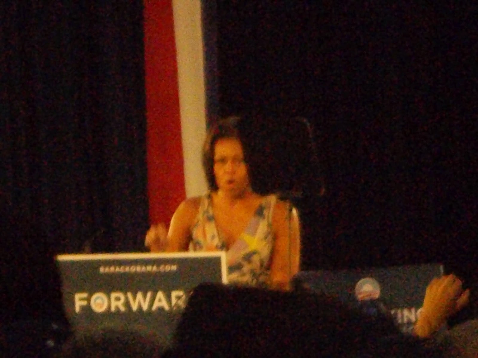 The First Lady must have been delayed at the last minute because I have never seen an intermission after the introductory speeches have already begun. These speeches are supposed to get the crowd revved up for the Main Act. However, they announced from the stage that there would be a 40 minute intermission before the First Lady would come out. That allowed the crowd to both mingle and push closer to the stage. Since it was starting to get a little tight where I was standing I decided to move back, which is why some of my pictures of The First Lady are less clear.