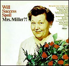 Lois Bock recalls: “Mrs. Miller would come to the L.A. studios and make recordings to send as gifts to orphanages those old, old songs like ` Alice Blue Gown’ in what she called her `operatic style’, and, on one of these sessions, Fred talked her into doing `Downtown’, which he took to Lex, who was an employee of Capitol at the time, and he heard something there.” She was signed to the venerated label, and work began on her debut, Mrs. Miller’s Greatest Hits.