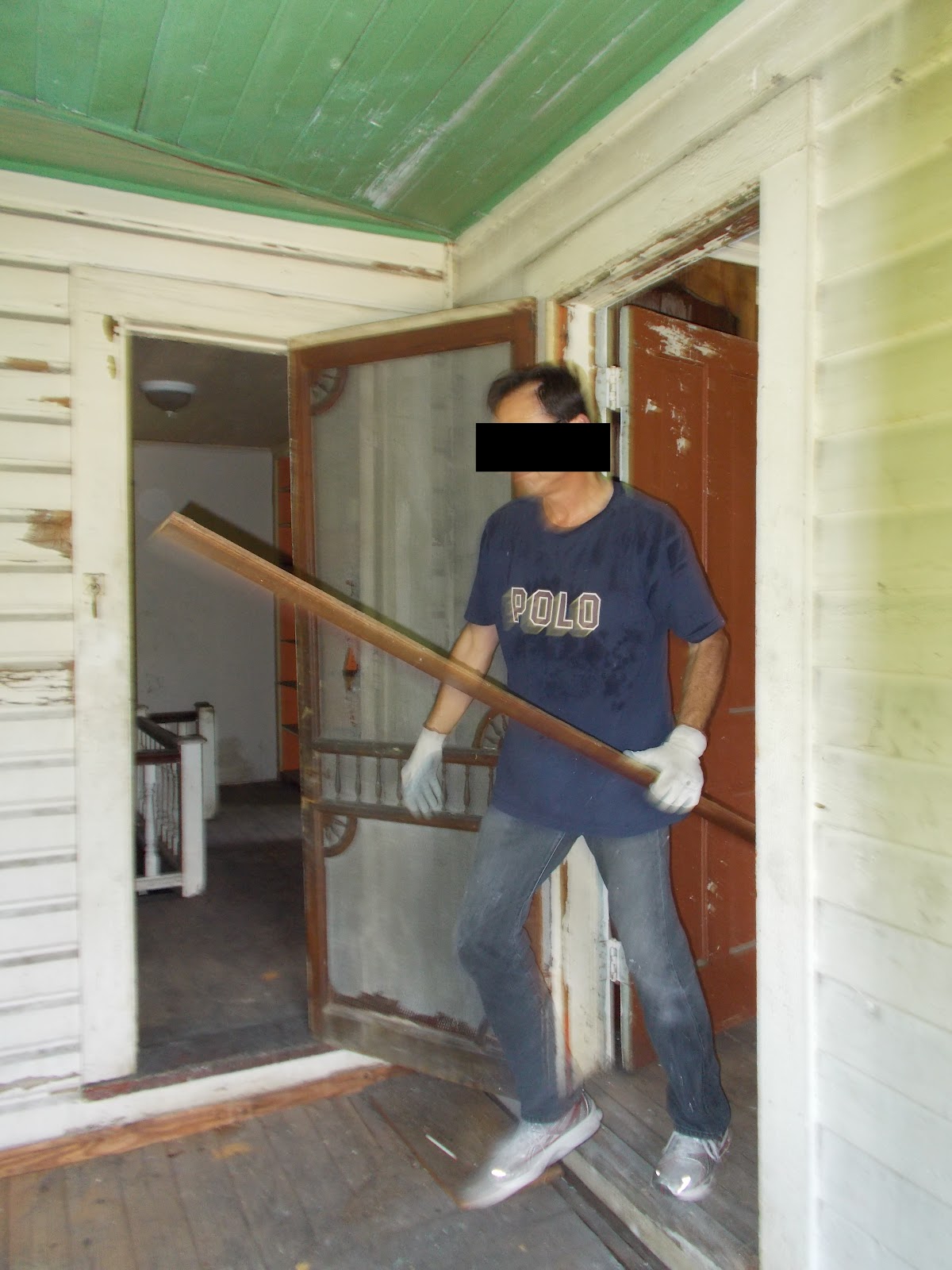 Demolition by Neglect. It has still yet to be sealed from the elements and is never secured. [More about that later.]