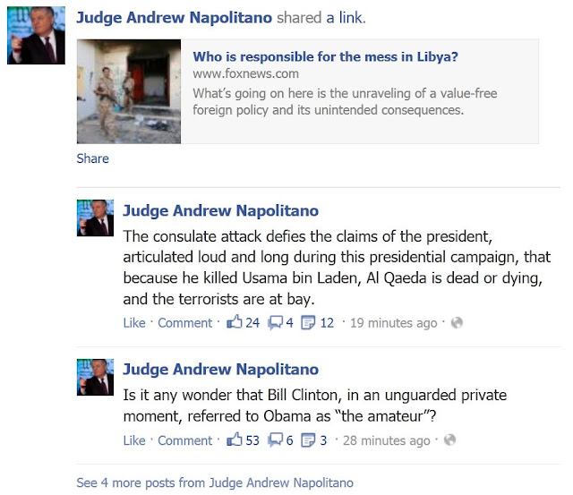 | Yeah, that’s the WHOLE reason, Judge Nap. It’s all President Obama’s fault and has nothing to do with the instability that “our former ally Col. Gadhafi” [sic] wrought. Oh, fer fuck’s sake!!! Give your head a shake, Judge. |