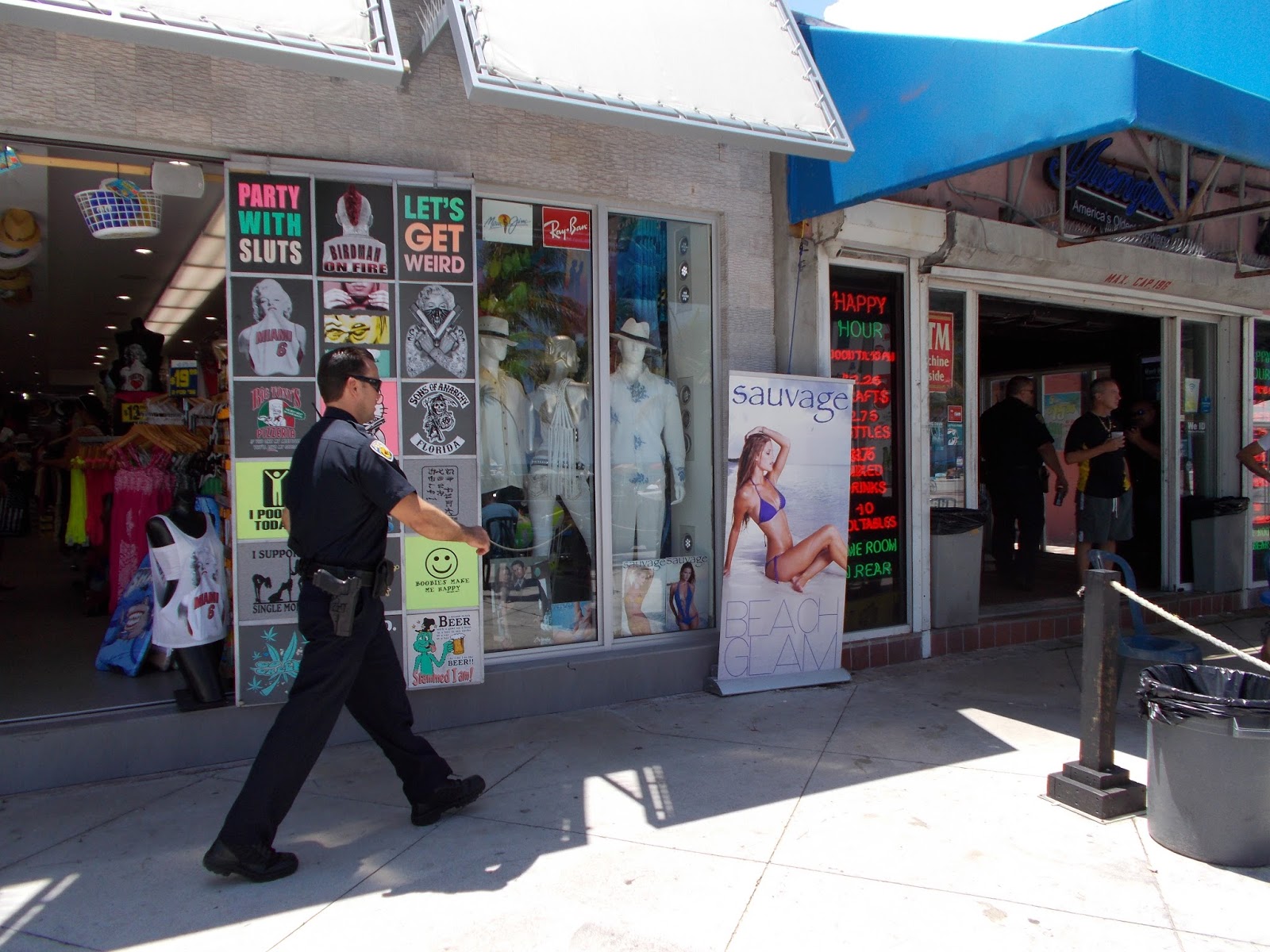 It was this curiosity that brought me to the Fort Lauderdale beach today. I stayed until about 3:30 and, when no protestors came out, I turned my curiosity to something else: Two police officers protecting Dirty Blonde’s from a protest that wasn’t happening. It’s hard to know exactly why the police officers were even there, since there was no protest whatsoever. *