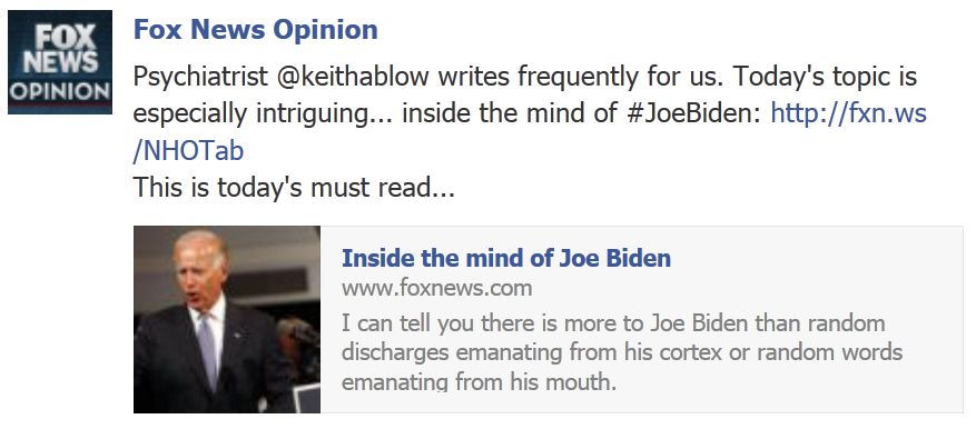 Another Dr. Keith Ablow job. He not only diagnoses the VP, but then goes after the POTUS as well.