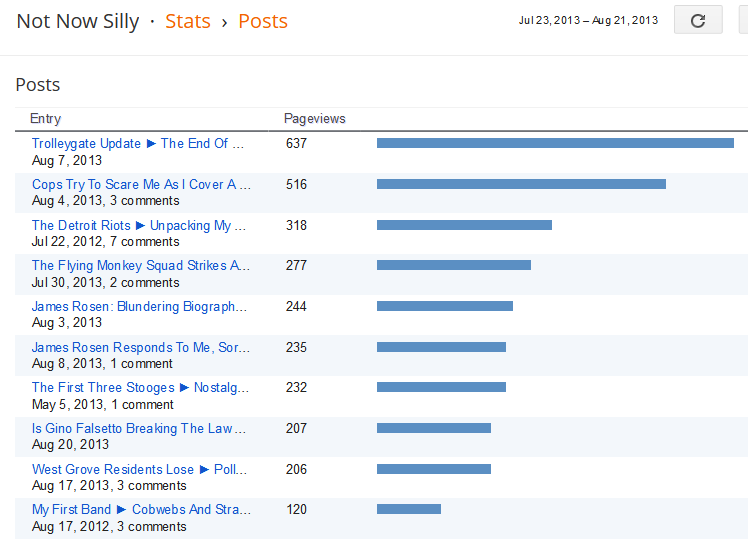 Meanwhile my Top Ten Posts for the same period looks like this: