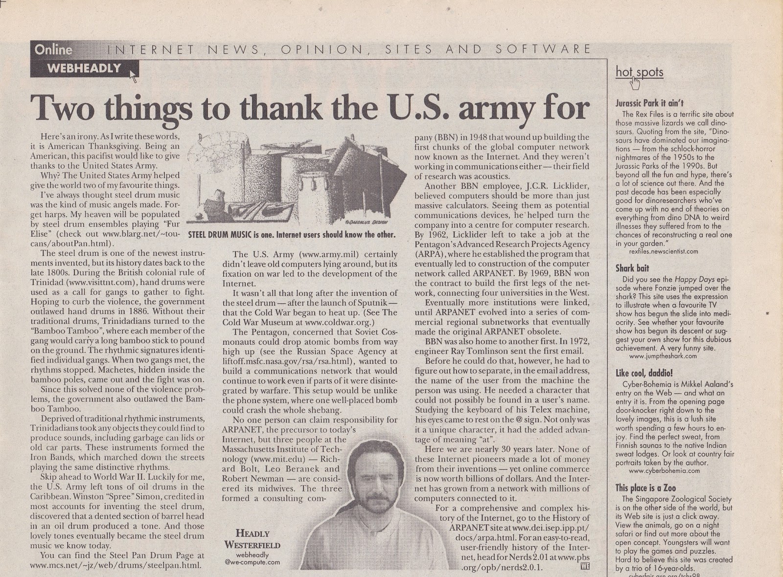 In the Go-Go ’90s, I was a columnist for We Compute. We Compute was, just like television, designed to be a conduit for advertising to the masses, with the content almost an afterthought. Like most of my freelance writing it started by studying the publication in question and then pitching the editor, who I had never met, an idea.